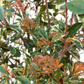 • Noii lăstari: Pe lângă frunzele sale spectaculoase, această varietate de Photinia produce noii lăstari de un roșu-aprins intens, mult mai pronunțat decât la alte exemplare, adăugând un contrast fascinant cu frunzele deja colorate.